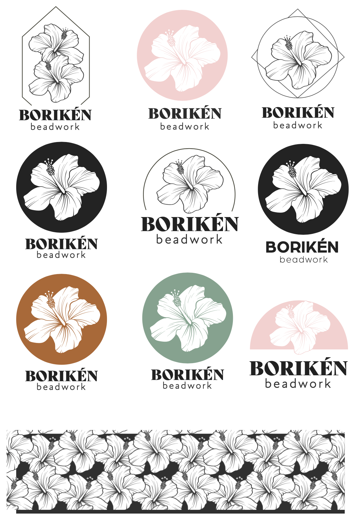 Boriken Beadwork is a woman-owned jewelry company. I designed a hibiscus flower logo and created a color palette and typeface pairing.